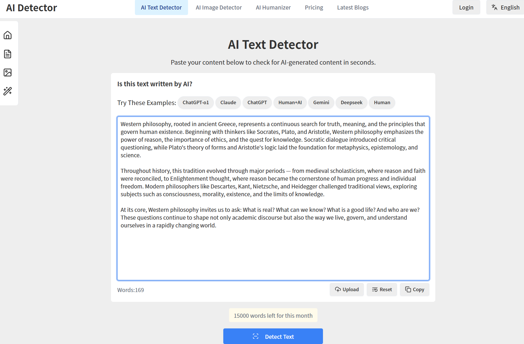 Enter the text you want to detect (you can also upload a file for detection)