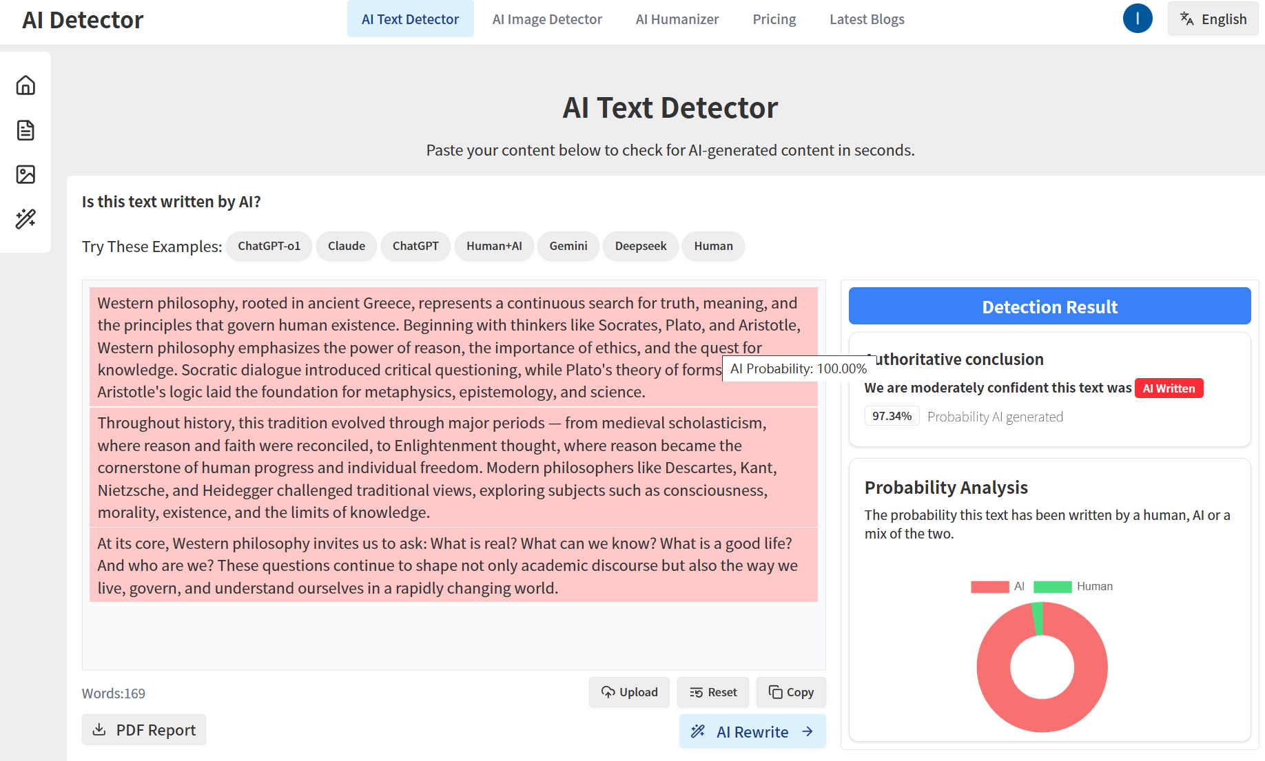 Human-machine collaborative processing: We will also continuously update the detection algorithm of our AI Detector through user feedback. If the user reports that there is a problem in a certain link of the detection, we will update or slightly adjust the algorithm to make the AI Detector even better.