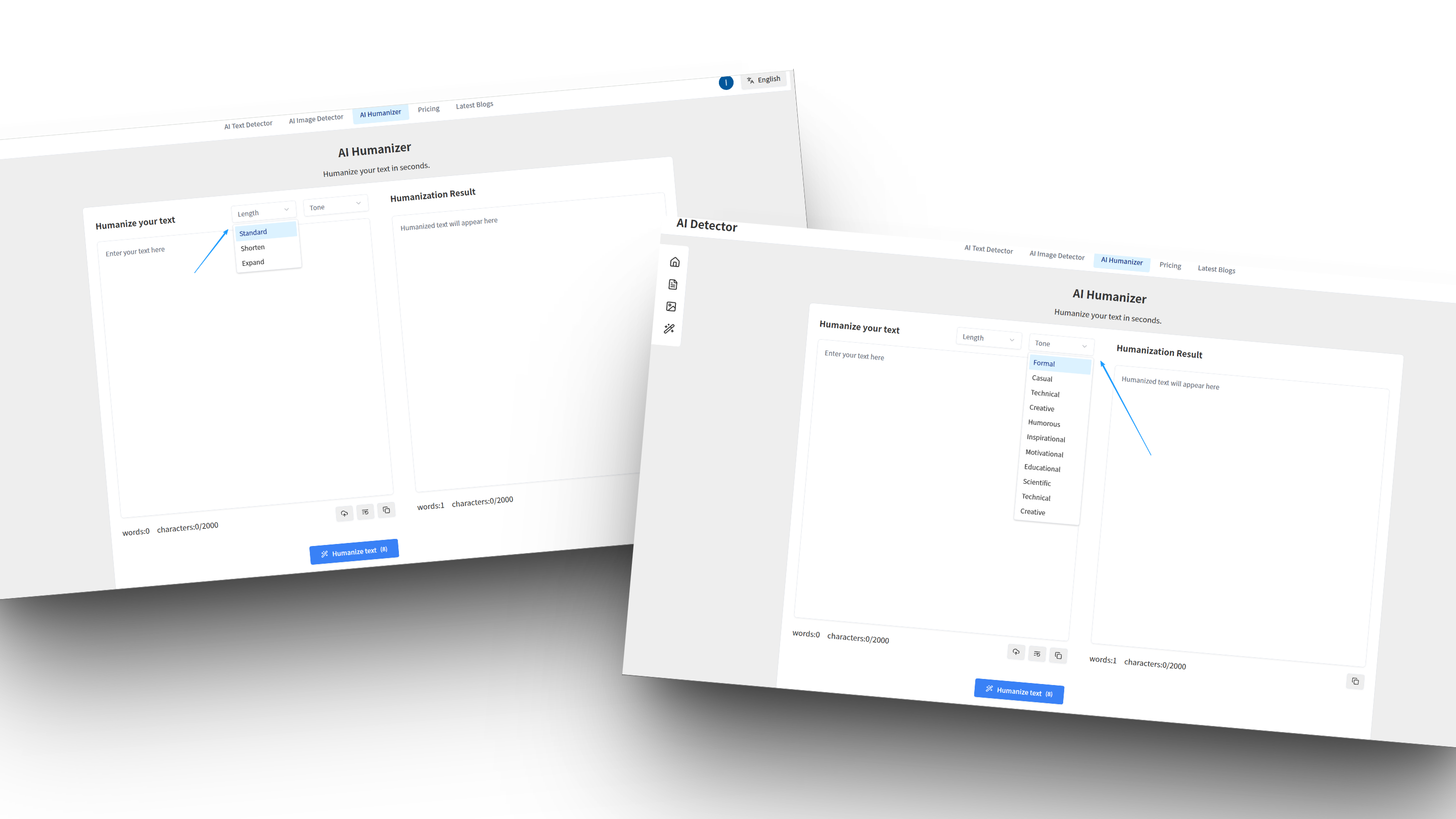 In Gptdetect you will have a variety of AI Humanizer tones to choose from, including formal, casual, technical, creative, humorous, inspirational, motivational, educational and scientific tones, allowing you to convert text to adapt to a variety of different scenarios.