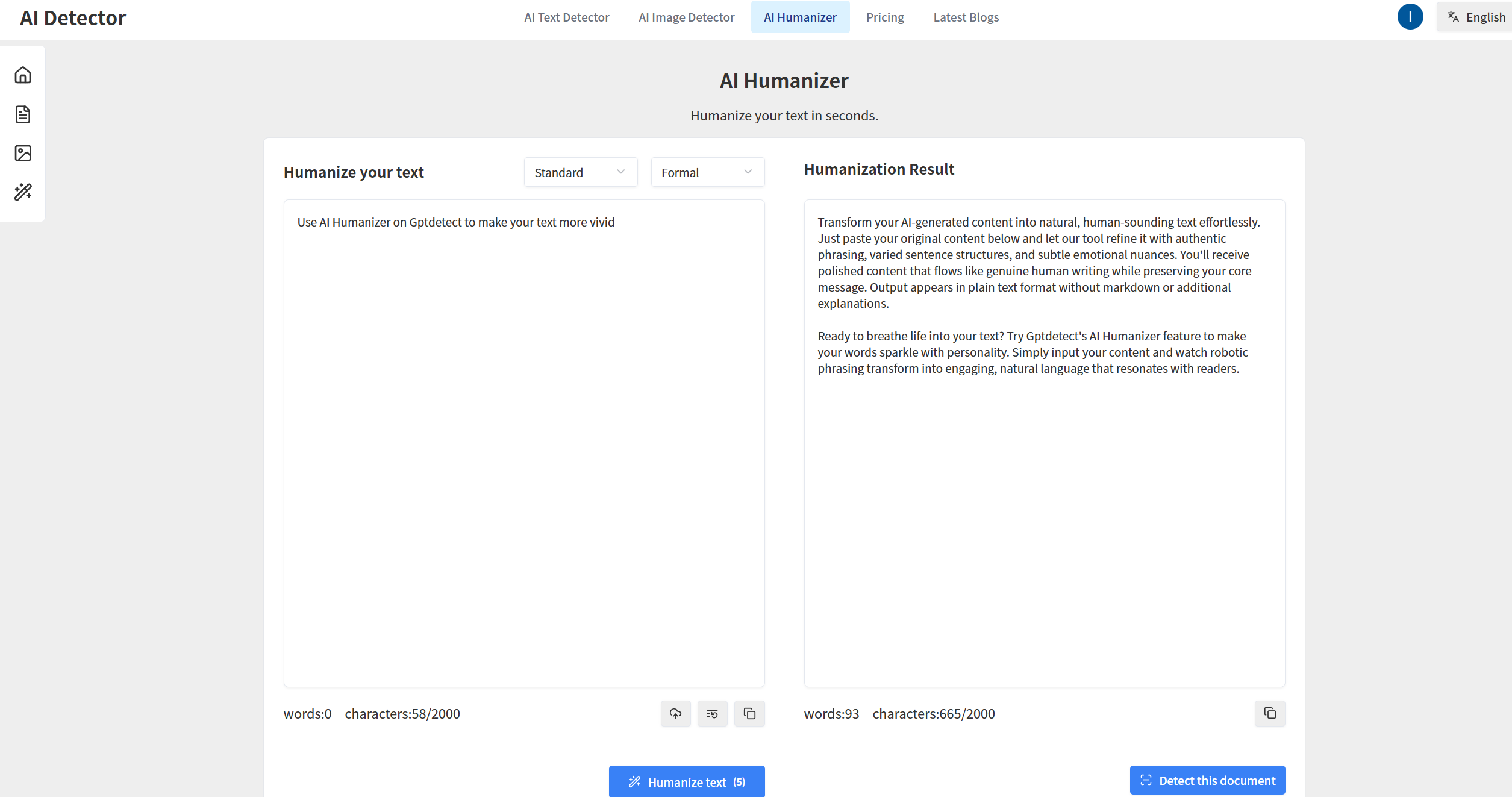 Using the AI Humanizer feature on Gptdetect can save you time and quickly optimize your text, making it not only more vivid, but also allowing you to spend less time processing more content.