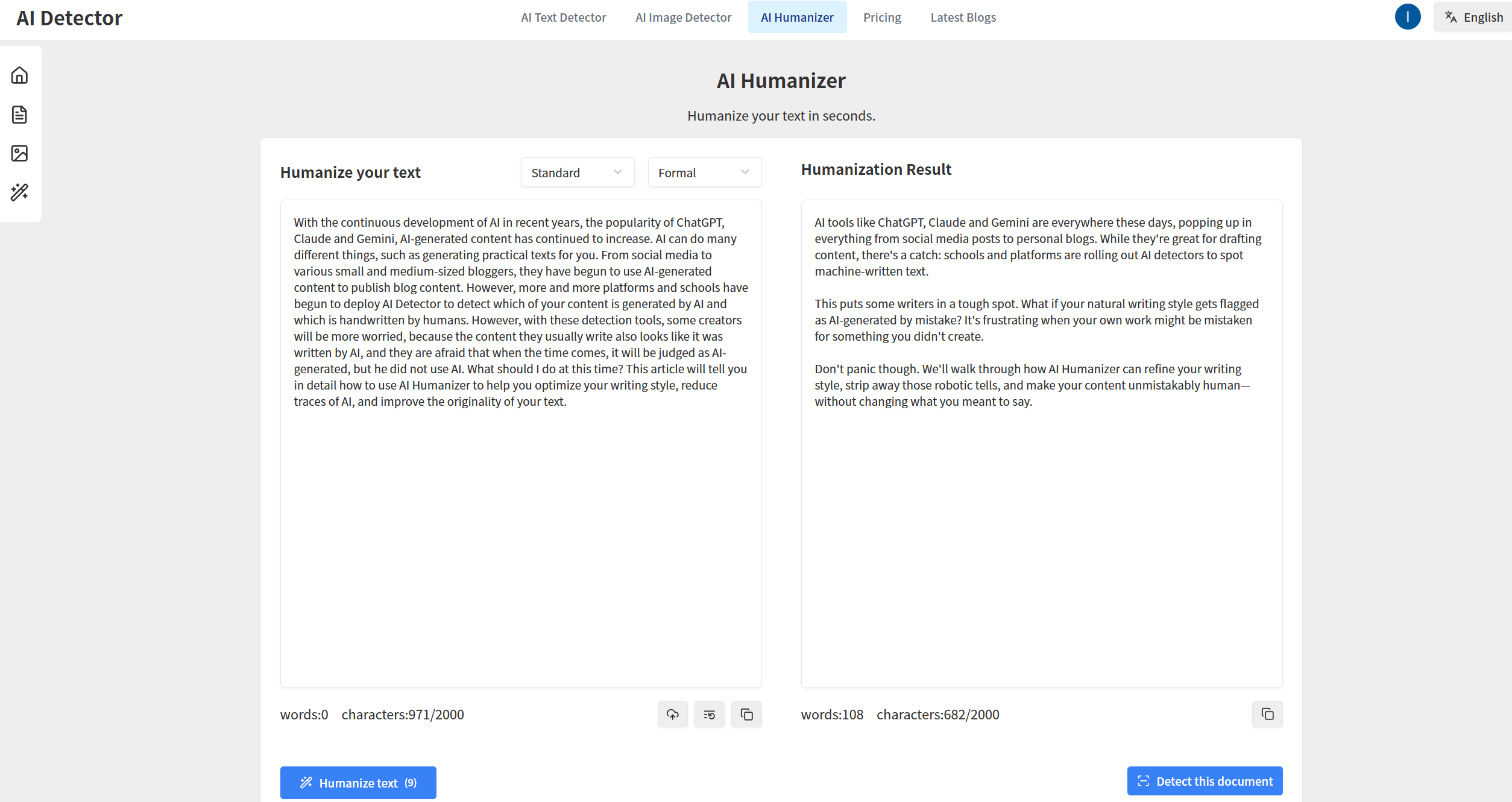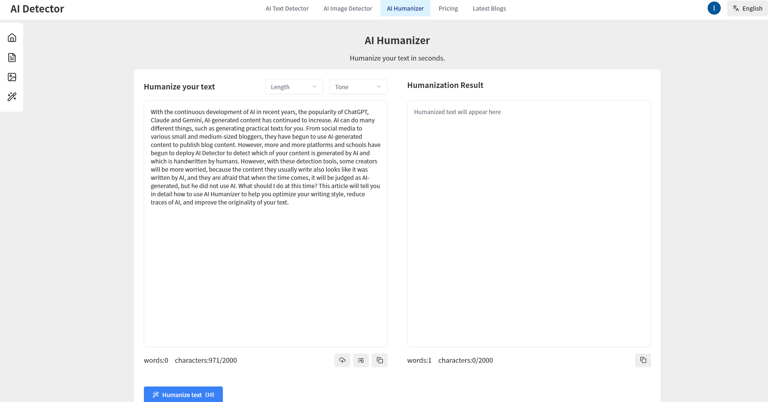 With the continuous development of AI in recent years, the popularity of ChatGPT, Claude and Gemini, AI-generated content has continued to increase. AI can do many different things, such as generating practical texts for you. From social media to various small and medium-sized bloggers, they have begun to use AI-generated content to publish blog content. However, more and more platforms and schools have begun to deploy AI Detector to detect which of your content is generated by AI and which is handwritten by humans. However, with these detection tools, some creators will be more worried, because the content they usually write also looks like it was written by AI, and they are afraid that when the time comes, it will be judged as AI-generated, but he did not use AI. What should I do at this time? This article will tell you in detail how to use AI Humanizer to help you optimize your writing style, reduce traces of AI, and improve the originality of your text.